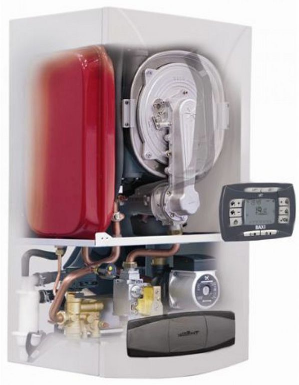 Un échangeur de chaleur typique est une conception bithermique. Les plaques de cuivre sont soudées par points sur la surface du tuyau.Ainsi, le fabricant a atteint l'indicateur d'efficacité maximale. Un vase d'expansion et une pompe de circulation sont installés dans la structure. Par conséquent, le raccordement de la chaudière baxi au système de chauffage ne présente pas de difficultés particulières. Mais il faut se rappeler que ce travail ne doit être effectué que par des spécialistes avec l'autorisation appropriée.