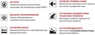 L'épaisseur des fibres de laine de roche est de 3 à 5 microns, leur longueur peut atteindre 16 mm. Cela lui permet d'être pressé dans des dalles solides avec une quantité minimale d'air à l'intérieur. Les fibres isolantes en basalte ne piquent pas et n'endommagent pas le système respiratoire. Vous pouvez travailler avec eux sans dispositifs de protection.