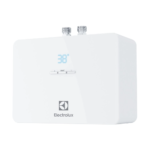 Pour les petits espaces, le chauffage instantané Electrolux NPX6 Aquatronic Digital convient. Son poids n'est que de 1,67 kg. L'appareil est connecté via la connexion supérieure. Il est équipé de commandes électroniques simples. Tous les paramètres d'installation sont affichés à l'écran. Les indicateurs s'allument et s'éteignent. L'appareil de chauffage est capable de passer 2,8 litres par minute. Pour garantir une utilisation en toute sécurité, l'appareil est équipé d'une protection contre la surchauffe et d'un fonctionnement sans eau.