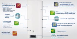 Les chauffe-eau Electrolux sont très appréciés des utilisateurs en raison de leur haut niveau de sécurité. Les constructions sont équipées d'un système de protection contre la surchauffe. Il coupe automatiquement le chauffage. Le système se compose d'un relais et d'une soupape de sécurité pour évacuer l'excès de pression dans le réservoir.