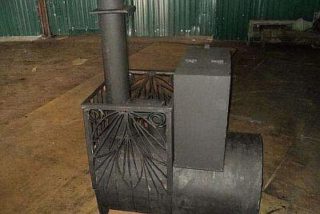 Le choix d'un dessin d'un poêle avec un poêle ouvert simplifiera grandement toutes les opérations de travail pour son assemblage. C'est encore plus facile à faire s'il y a une tôle de la taille requise sur la ferme.La structure est constituée d'une ébauche de tuyau divisée en deux sections par une grille préalablement achetée. Un foyer est réalisé dans sa partie supérieure, et la partie inférieure servira de cendrier et de souffleur.