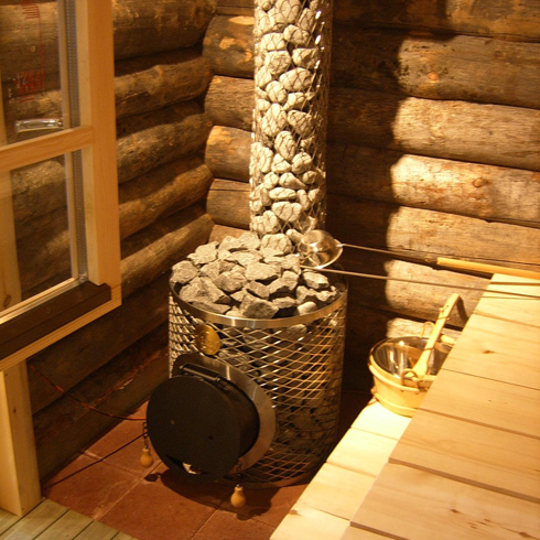 Les deux compartiments sont complétés par des portes par lesquelles le bois de chauffage est introduit, l'air est fourni et les produits de combustion sont évacués. Dans l'extrémité supérieure de la billette de tuyau, un tuyau de fumée d'un diamètre de 100 mm est monté. Au sommet du four presque terminé, une boîte métallique est soudée dans laquelle des pierres sont posées. Le coude de la cheminée peut les contacter, transférant une partie de la chaleur pour un meilleur chauffage. Dans ce cas, le réservoir d'eau est en tôle de fer. Il se pose directement sur le corps du poêle par n'importe lequel de ses côtés en fonction de l'agencement du hammam ou du sauna.