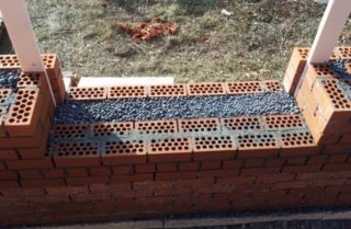 Pour l'isolation thermique du sous-sol, un mur de briques de protection est préalablement construit, en le retirant à 20-30 cm du bord supérieur de la fondation. Après la pose, de l'argile expansée est coulée et un rouleau de matériau résistant à l'humidité est posé dessus.