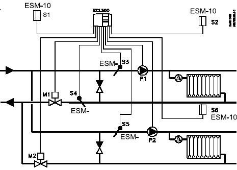 - Le régulateur de l'installation de chauffage peut réguler les circuits directs et mélangeurs en fonction de la température extérieure et ambiante ;