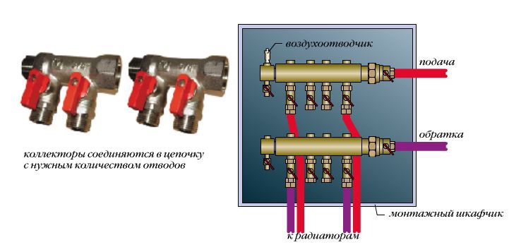 L'emplacement d'installation du collecteur de distribution dans le système de chauffage dépend de son objectif. Le plus souvent, il est utilisé pour organiser l'alimentation en chaleur multi-circuits. Cependant, en plus de cela, c'est un élément indispensable d'un plancher chauffant à eau.