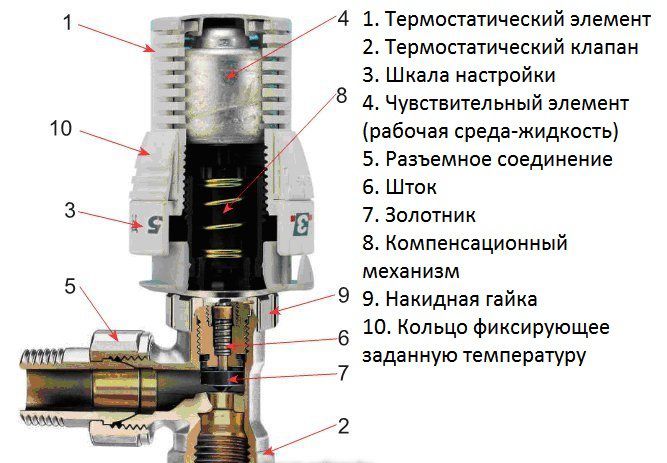 La conception la plus simple d'une vanne de chauffage thermostatique comprend une tige à aiguille qui est connectée à un élément de commande thermostatique. Selon la température du milieu, il a tendance à se dilater ou à se contracter. C'est ainsi que le volume du liquide de refroidissement entrant dans le radiateur est régulé.