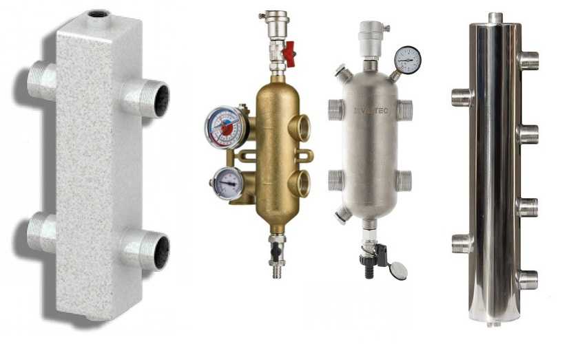 Si vous avez l'intention de créer un système de chauffage à plusieurs circuits avec différentes températures du liquide de refroidissement, vous devrez assembler une flèche combinée (avec un collecteur).