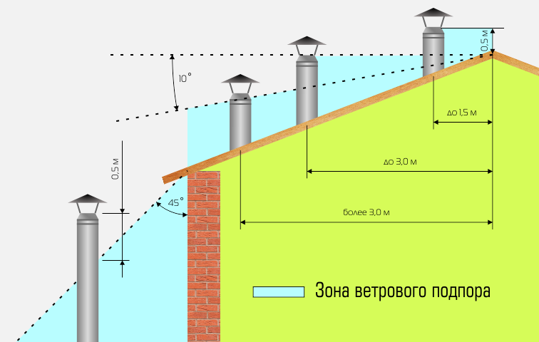 - la hauteur du tuyau doit offrir une bonne traction, par conséquent, il doit s'élever d'au moins 50 cm de la surface du toit;