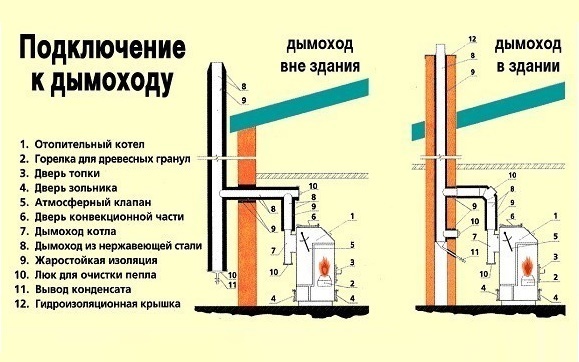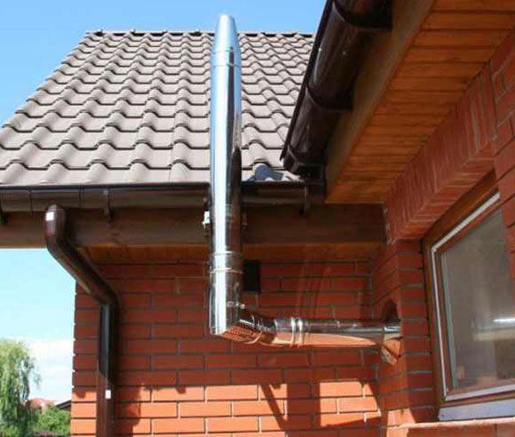 Pour une chaudière à chambre fermée, une cheminée coaxiale est installée. Il se compose de deux tuyaux insérés l'un dans l'autre. L'un est utilisé pour fournir de l'air pour soutenir le processus de combustion, et l'autre est utilisé pour éliminer les produits de combustion. Dans la rue, un tel tuyau est souvent retiré à travers le mur, car la turbine assure la traction.