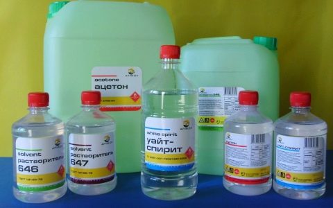 - Le solvant est versé dans le récipient préparé. Nécessite 50-100 ml de la substance.
