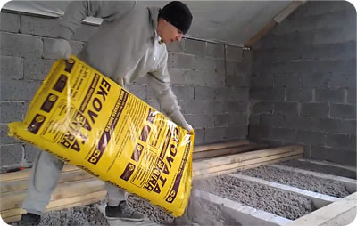 Si l'installation d'ecowool est réalisée de manière automatisée, un espace fermé avec une ouverture égale au diamètre du tuyau est préalablement créé.Le constructeur lui-même verse des fibres sèches dans le cadre du sol sans aucun problème. La méthode manuelle prend du temps mais coûte moins cher.