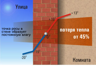 - Installation incorrecte. Si vous laissez un espace entre le mur et le revêtement isolant, le point de rosée s'y déplacera. Le mur absorbera inévitablement la condensation, ce qui réduira considérablement la protection thermique.