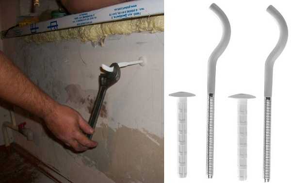 - Si le mur est en brique ou en béton, des chevilles doivent être installées. Si des cloisons sèches ont été utilisées pendant la construction, le support de radiateur doit être des deux côtés.