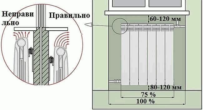 - Les écrans ne doivent pas être installés au-dessus des radiateurs, car ils réduiront l'efficacité. Dans ce cas, la perte de chaleur peut aller jusqu'à 40 %.