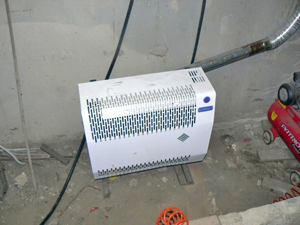 Les convecteurs à gaz pour garages se distinguent des autres modèles par la présence d'un échangeur de chaleur céramique/acier. Cet élément chauffant est d'abord chauffé avec une flamme nue, puis dégage de la chaleur vers l'extérieur en raison de la convection de l'air. Dans sa partie inférieure, il y a des ouvertures pour le flux d'air froid, et en haut se trouvent les mêmes pour la sortie des jets chauds.