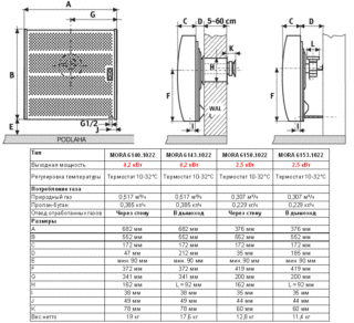 Les caractéristiques techniques des convecteurs à gaz sont représentées par les paramètres de fonctionnement suivants :