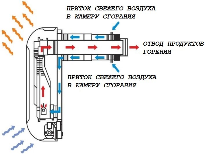 L'élimination des produits de combustion du combustible gazeux s'organise naturellement (du fait des pertes de charge en différents points) ou par voie obligatoire. Dans le second cas, un ventilateur de puissance suffisante est installé dans le canal de leur sortie. Les avantages des échantillons à débouché naturel sont leur faible coût et leur simplicité de conception. Les modèles avec désenfumage forcé ont un circuit électrique plus complexe et pour cette raison, ils sont beaucoup plus chers.