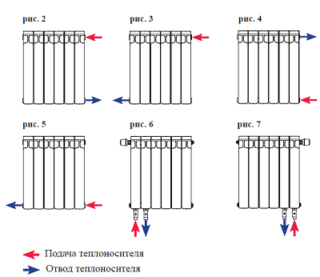 La figure 4 montre la pire de toutes les options. Dans ce cas, le transfert de chaleur diminuera de 20 à 30 % avec le nombre de sections jusqu'à 6 pièces. compris. Plus il y a de sections, plus il y aura de pertes.