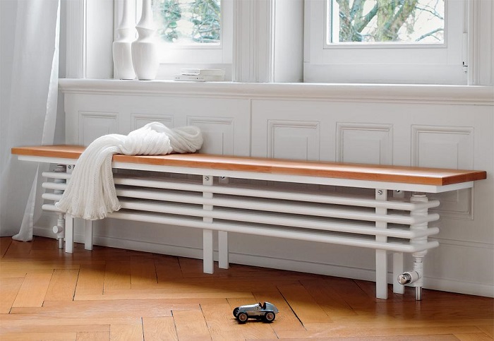 - La fonctionnalité des produits des radiateurs design se manifeste par le fait qu'ils peuvent servir de sèche-linge, de sièges), supports pour objets d'intérieur, lampes, panneaux décoratifs.