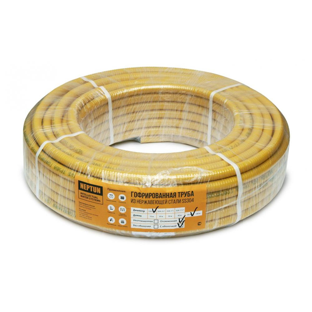 Le tube ondulé standard en acier inoxydable pour le chauffage est produit avec un diamètre de 15 à 32 mm. La température de travail du matériau varie de -50 à +180 degrés. La pression maximale est de 50 atmosphères.