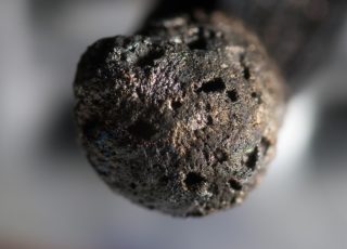 Le matériau est obtenu par fusion de fonte brute. La composition comprend les restes de roches, de fondants et de cendres de combustible. Les pièces sont très poreuses, le matériau est fluide.