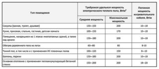L'indicateur est sélectionné en fonction de l'objectif. Dans les pièces à vivre, le chauffage principal nécessite des planchers d'une capacité de 120 à 180 W/m². m, pour une salle de bain - 120-150 W / m². m, pour une loggia - jusqu'à 230 W / m². m.