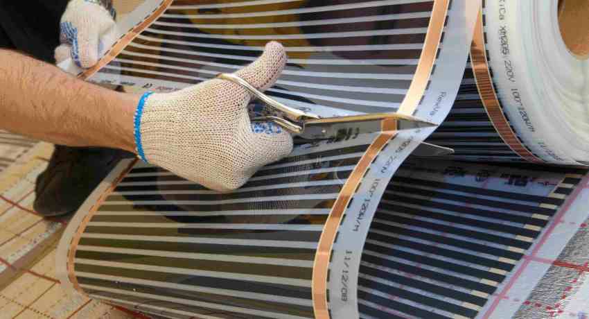 - Réchauffeurs IR à film - les bandes de carbone agissent comme un élément chauffant. Lors du passage du courant, ils émettent un rayonnement infrarouge. Il ne chauffe pas l'air, mais les surfaces, les objets et les personnes, et seulement ensuite l'air. Cela rend la température plus chaude, réduisant l'intensité de chauffage et économisant de l'énergie. Le film IR est posé à la fois dans la chape et dans la couche de colle.
