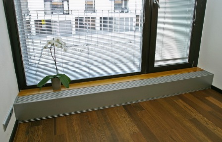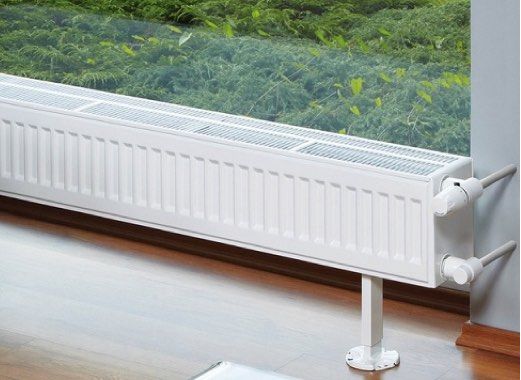 Les radiateurs à faible chauffage pour fenêtres panoramiques se distinguent par leur petite taille - avec les pieds de support, leur hauteur dépasse rarement 150-200 mm.