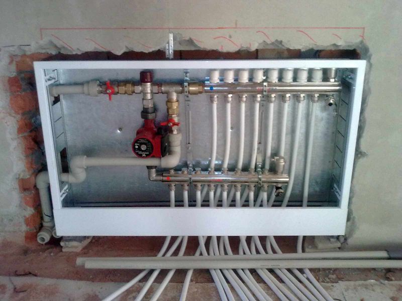 Pour un système de plancher à eau chaude, une boîte de protection doit être fournie dans laquelle le collecteur sera situé. Sans cela, la probabilité d'endommager les composants individuels augmente.