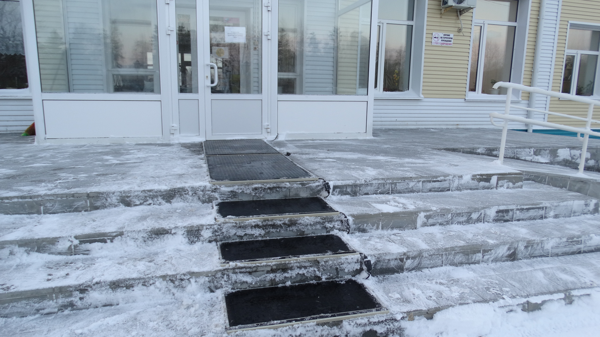 Les passerelles s'adaptent simplement au trottoir, aux marches ou au porche. Ils sont interconnectés et connectés au réseau. Ils ne s'allument que lorsque la neige tombe ou que la glace apparaît.