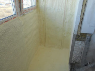 Il s'agit d'un caoutchouc mousse modifié avec des propriétés légèrement différentes - il est plus durable et plus dense. Convient comme isolant pour balcons. Il est le plus souvent utilisé sous forme de mousse pour la pulvérisation sur des surfaces à isoler. La couche de mousse dépendra du matériau des murs, ainsi que du climat du lieu de résidence. Le plus est que la mousse de polyuréthane crée un cadre monolithique à travers lequel les masses d'air froid ne pénètrent pas.