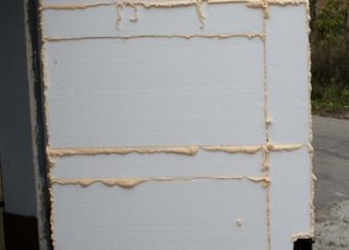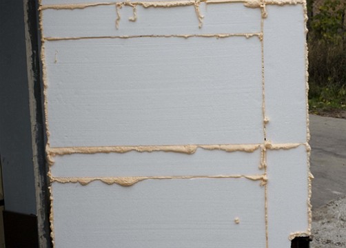 - Les vides dans le cadre sont remplis de plaques de mousse (un adhésif spécial est utilisé pour les fixer).
