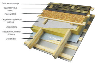 Lorsque vous travaillez avec le matériau, vous devez décider quelle couche est nécessaire pour isoler le grenier avec de la laine minérale. Le schéma d'isolation comprend les composants suivants :