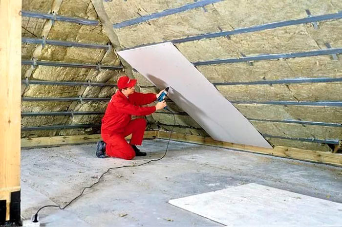 Ensuite, la finition finale du toit est effectuée. Il doit être cousu avec des plaques de plâtre.