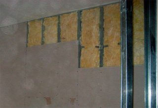 - La cloison sèche est vissée le long du cadre.Les joints sont scellés avec un treillis, les empreintes des capuchons des vis autotaraudeuses sont maculées.