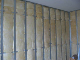 - Des planches à orientation verticale sont fixées au mur. La distance entre eux doit être inférieure de 3 à 4 cm à la largeur de la laine minérale. Pour la mousse, la meilleure option est de 100 cm.