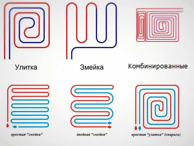Dans le cas d'une installation en forme de serpent, les tuyaux longent le mur extérieur, puis reviennent. Il est préférable de choisir un tel schéma pour les pièces d'une petite surface.