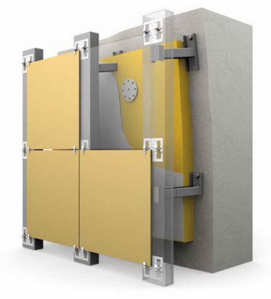 - Sur un cadre en profilé d'acier. L'acier inoxydable est utilisé, car le fer ferreux rouille rapidement en raison des températures extrêmes et de la condensation. Les profilés sont fixés à une distance de 1 à 3 cm de la base, les carreaux s'y déplacent, comme le long de guides. L'air chaud est emprisonné entre les surfaces pour chauffer le revêtement extérieur.