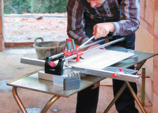 - Placer le mortier sur les carreaux et étaler avec une truelle crantée.