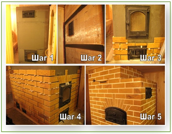 Lors de la finition avec des carreaux, un mélange spécial résistant à la chaleur et du silicone résistant à la chaleur sont utilisés. Le collage s'effectue en même temps que la tension du fil inséré dans les truelles. Après l'installation, un tirage supplémentaire du fil est effectué verticalement et horizontalement.