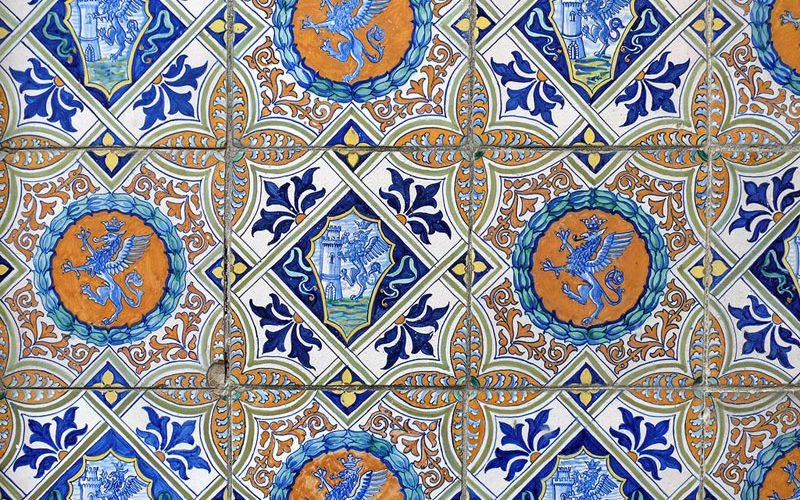 - Majolique. La tuile est caractérisée par la beauté, l'unicité et la personnalité. Il est produit en tirant des flans sur lesquels un motif est appliqué. Pendant le processus de chauffage, la glaçure est cuite et acquiert un bel éclat. Le matériau est durable à l'intérieur, mais le revêtement extérieur nécessite une manipulation soigneuse. Le revêtement est hydrophobe et résistant à la chaleur. Une large gamme de produits de style classique et ethnique est en vente.