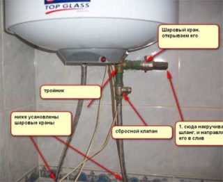 La vidange se fait par un trou standard dans la soupape de sécurité ou un robinet prédécoupé est utilisé. L'alimentation en eau froide et l'alimentation électrique sont coupées. Un tuyau est placé au niveau du manchon de vidange, à travers lequel le liquide s'écoule. Le tuyau s'insère dans un évier, une baignoire ou des toilettes.