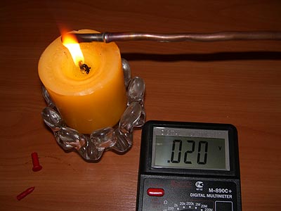 Pour étudier les performances de l'appareil, il est nécessaire de connecter une extrémité à un multimètre, et de chauffer l'autre avec un briquet. Le thermocouple de travail a une tension approximative de 50 mV.