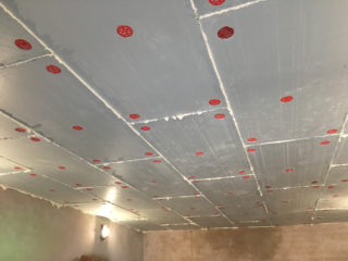 - Si un sous-sol est fourni dans la maison, vous devez commencer à l'isoler. Le plafond du sous-sol est isolé. Cela bloquera l'accès à l'espace chaud. Pour l'isolation des sols en béton, il est recommandé d'utiliser des feuilles PSB de 5 à 10 cm, qui sont fixées avec de la colle spéciale et des chevilles en plastique. Toutes les fissures et les joints doivent être remplis de mousse de polyuréthane. A la fin des travaux, la mousse est enduite.
