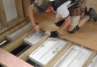 Plusieurs techniques de pose peuvent être utilisées selon le matériau du sol. Le sol est isolé sous la chape et le long des bûches.