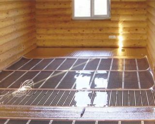 - Film. À l'intérieur des bandes flexibles, d'une épaisseur de 0,5 à 0,8 mm, se trouvent des conducteurs en cuivre revêtus de carbone qui émettent un rayonnement infrarouge sous tension. Une caractéristique du film est qu'il n'y a pas besoin de chape, car le rayonnement traverse tous les matériaux. Les bandes peuvent être collées sur le support puis recouvertes de carrelage, de linoléum et de tous types de parquets. La puissance des produits varie entre 100 et 200 W/m².