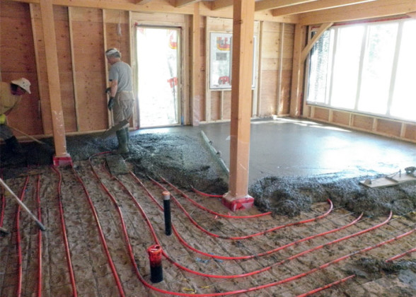 Après l'installation, un test fonctionnel est effectué. Si tout fonctionne correctement, la chape est coulée et finie.