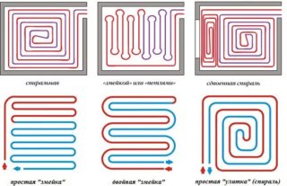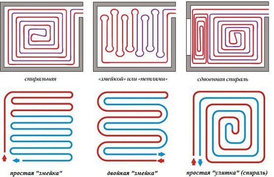 - Les conduites d'eau sont posées en serpent ou en spirale. Lors du choix de la forme du serpent, il est préférable d'utiliser des blocs de mousse profilés avec des rainures.