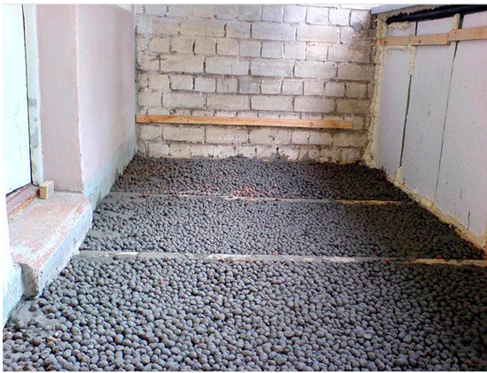 L'algorithme d'isolation du sol dépend également du type d'isolation. Une chape sèche est utilisée, soulevant le sol sur des bûches ou un sol en mousse de polystyrène extrudé directement sur la surface en béton. Cette dernière méthode ne donne pas l'effet escompté, mais réduit simplement les pertes de chaleur.