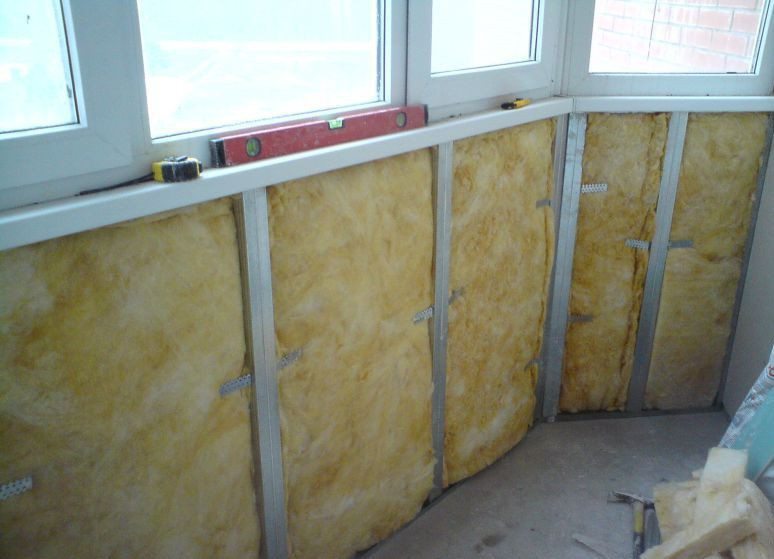 Avant d'installer la caisse, il est recommandé de recouvrir les murs de mousse de polyéthylène recouverte d'un film. L'efficacité augmentera et la chaleur restera longtemps sur le balcon ou dans la loggia. Une caisse est placée sur le dessus à une distance égale à la largeur des tapis isolants thermiques. Après cela, l'isolation elle-même pour le balcon est posée dans les cellules formées. Un pare-vapeur est placé sur le dessus, qui doit être attaché aux agrafes.